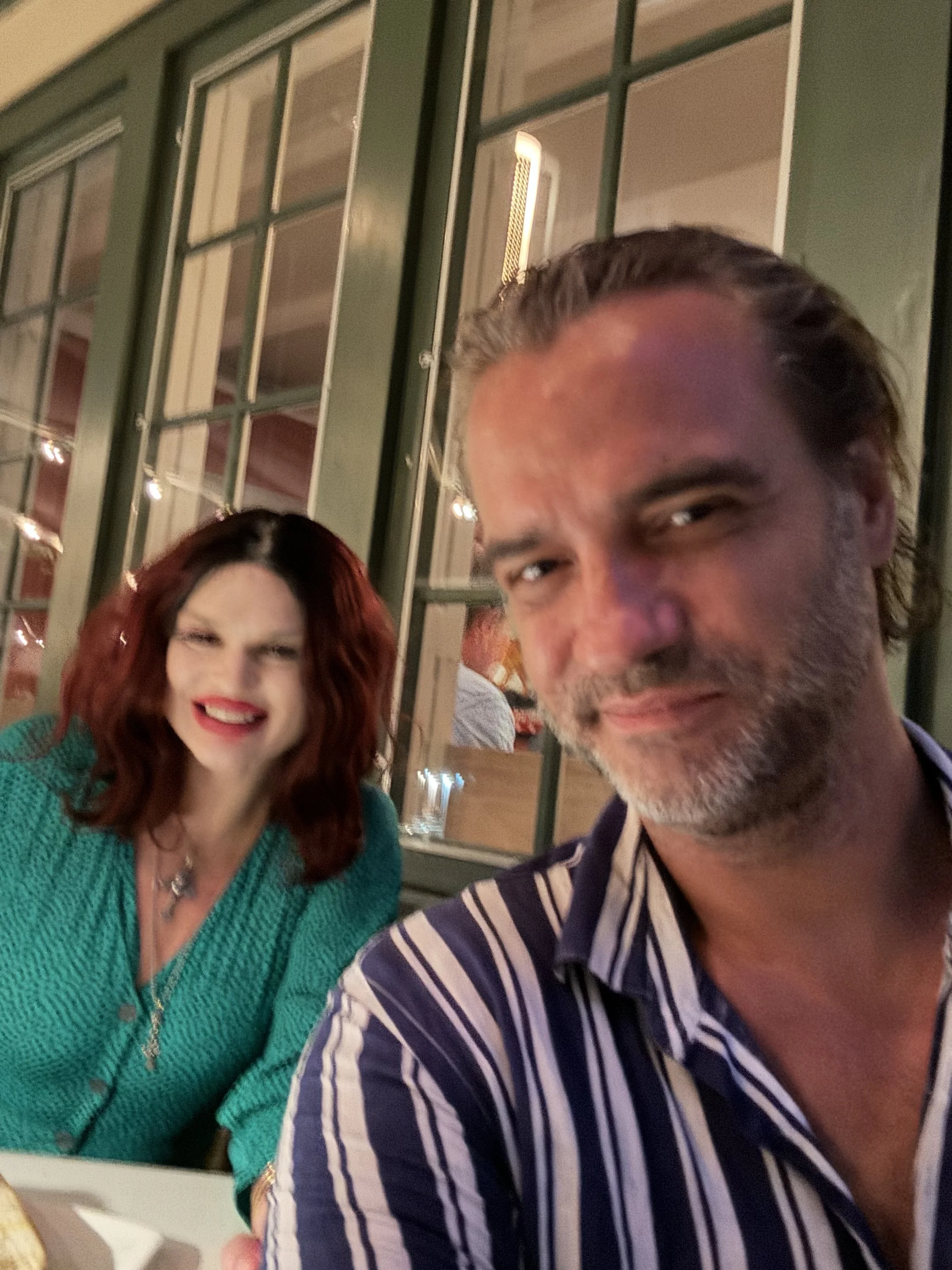 I sat on a curb to see a beautiful blonde I had never met and we ended finding out we both lived in Malibu - gave her my number and I thought maybe we could get coffee sometime - texted her that night and we’ve been together ever since